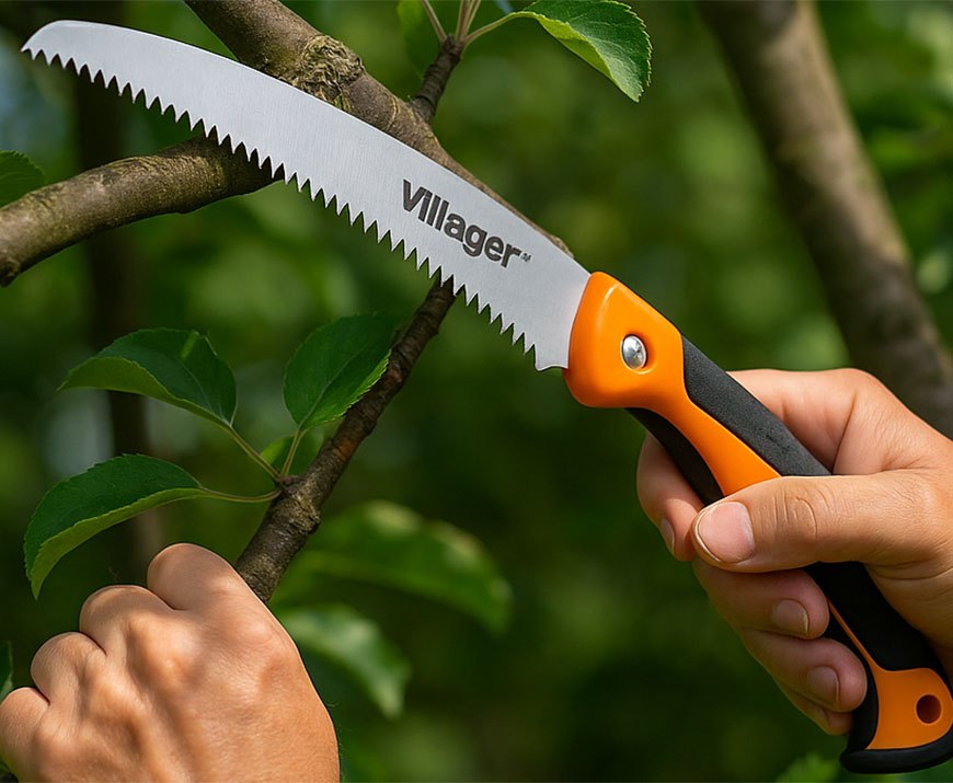 Za natančno in čisto rez je ključna uporaba kakovostnega orodja. Priporočamo škarje za obrezovanje Fiskars, ki slovijo po svoji ostrini, ergonomskem oprijemu in dolgi življenjski dobi. Za debelejše veje pa je primerna uporaba žage Villager, ki omogoča zanesljiv in varen rez brez trganja lesa. Pravilna uporaba dobrega orodja zmanjša možnost poškodb drevesa in pripomore k hitrejšemu celjenju ran.