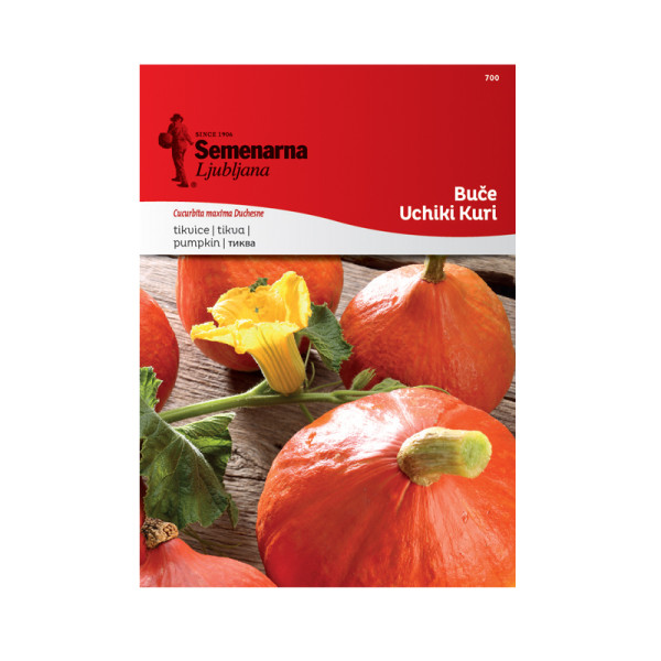 Seme kali 8-15 dni. Oranžne buče hruškaste oblike, težke 1,5-2,5 kg, z oranžno rdečim m...